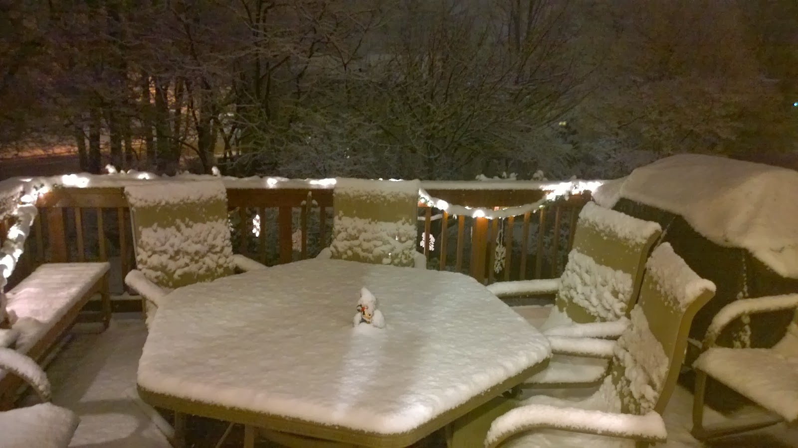 Voor we het weten ligt er een paar centimeter. Saskia's tweede bijleslerares (voor AP environmental science) arriveert en gaat een uurtje later wat angstig weer op weg, want op de weg ligt inmiddels ook een laagje. Zij is net uit Honolulu, Hawaii, hierheen verhuisd en heeft in haar leven nog nauwelijks sneeuw gezien laat staan er doorheen gereden.