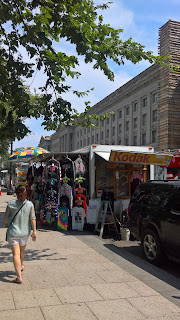 Als ik om kwart over tien weer naar buiten loop gaat mijn telefoon. T. zegt dat ze nog naar een parkeerplek zoeken en half elf dus niet gaat lukken. Ik ga in de schaduw wachten en zie telkens gezinnen van vier langskomen, maar die lopen me voorbij. Ook bel ik Mark van de Old Ebbitt Grill om de reserveringstijd te verzetten.