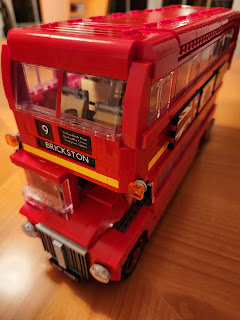 Na het eten belt Rick even met Katja en Kai van wie hij de Lego dubbeldekkerbus kreeg. Die is nu af en erg leuk. Ik vind de bestemmingen ook grappig gevonden, al had Rick liever echte bestemmingen gezien.
